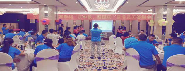 “金秋送爽,丹桂飘香,举国欢庆,此时此刻我们心情澎湃,满怀激动与感恩。华灯绽放,激情无限,放飞自我,此时此景我们欢歌笑语,齐聚一堂”。在一声声的祝福和赞美声中,2018年9月30日晚上18:00,温州市宜和鞋材有限公司在荣欣楼二楼“吉祥厅”举办了以“感恩相伴 梦想同行”为主题的2018年”庆中秋、迎国庆”暨8年老员工答谢活动。