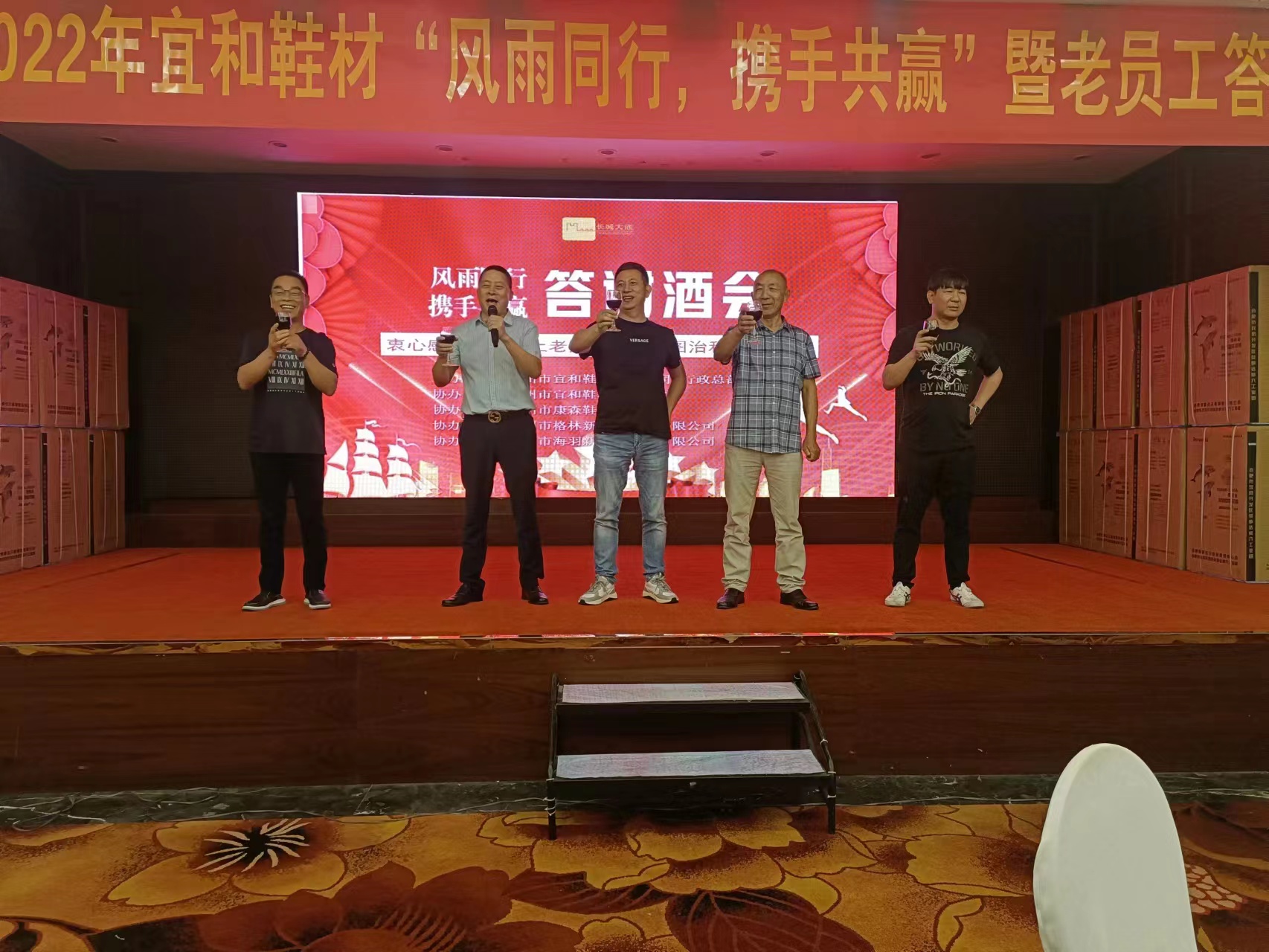 2022年10月1日 17:00,温州市宜和鞋材有限公司“风雨同行 携手共赢” -暨3年老员工答谢晚会。在中瑞大酒店-正式拉开序幕。宜和团队所有3年以上老员工共计365人欢聚一堂,同时张秀龙董事长、黄庆宝总经理及宜和、格林、康森三位总经理也都亲临晚会并观看了表演。