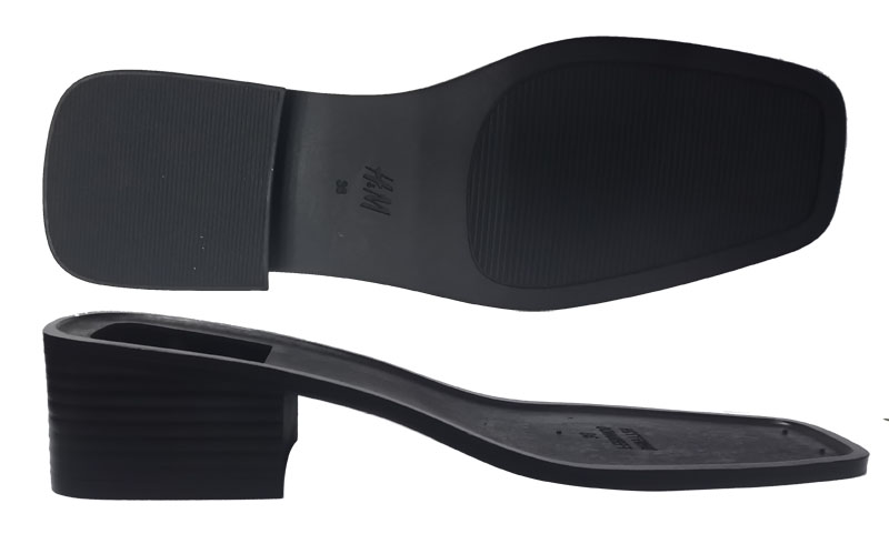 女鞋,TPR黑色再生料打底喷漆+后跟印刷